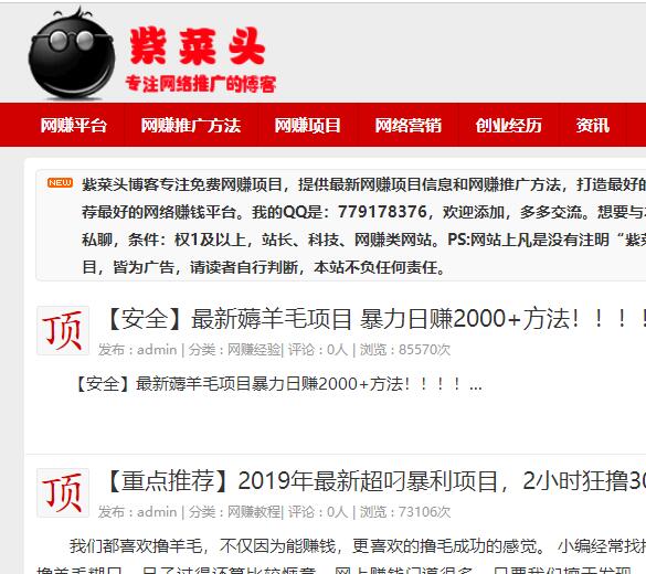 - 站点名称: 紫菜头网赚博客(紫菜头网络博客)