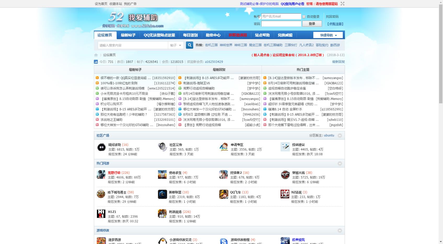 我爱辅助游戏论坛是综合交流当下比较热门游戏的交流论坛在这里你可以畅游游戏给您带来的快乐,与他人分享。