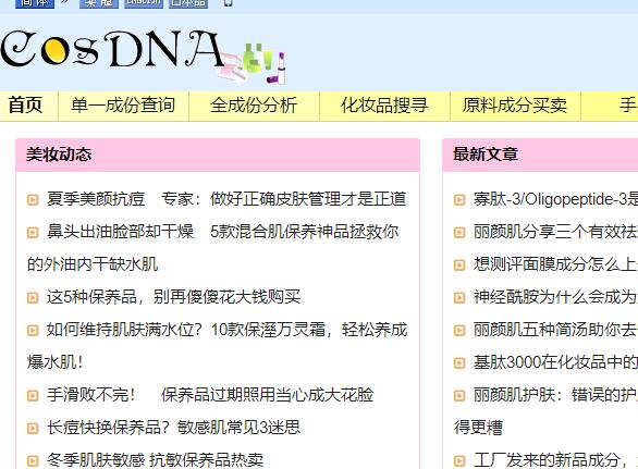 - 站点名称: cosdna(cosdna化妆品成分查询)