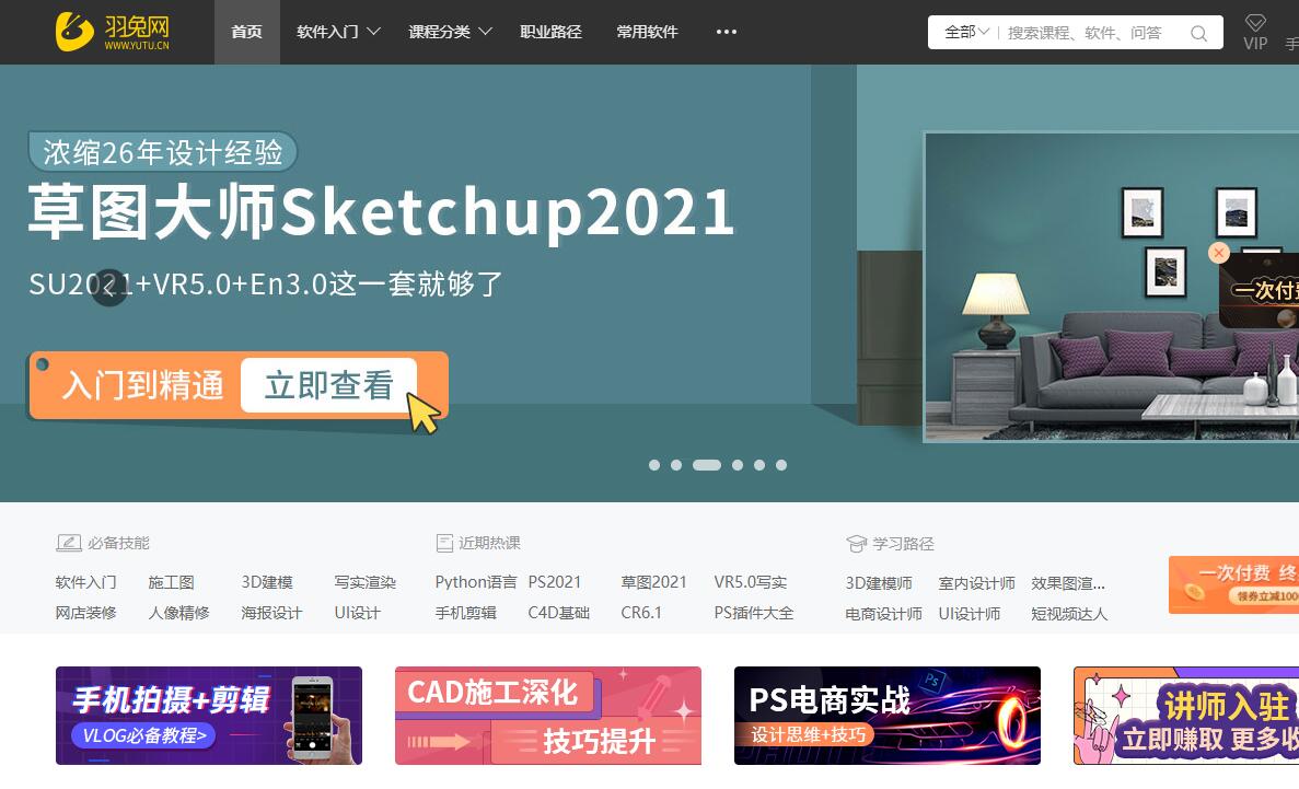 羽兔网一个专注于设计培训在线自学平台,致力于为每一位用户打造从理论到职场、全方位的自学内容,目前网站提供室内,平面,电商,UI,影视,职场办公等精品设计视频教程,为每一个热爱设计、想学到实用技能的学习者,提供贴心的一站式学习服务。