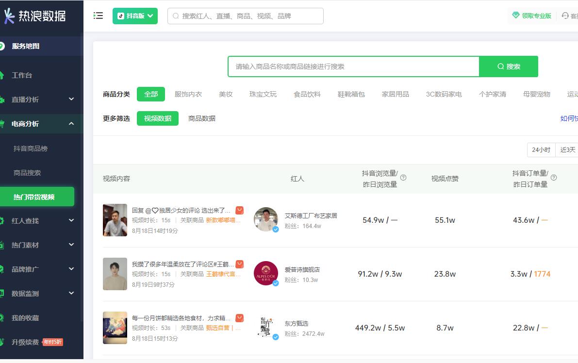 热浪数据(热浪数据官网) - 短视频与直播电商一站式数据分析平台